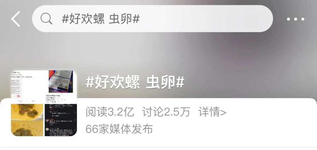 近日,#好欢螺 虫卵#事件闹得沸沸扬扬,话题一度登上微博热搜,引发舆论关注。
