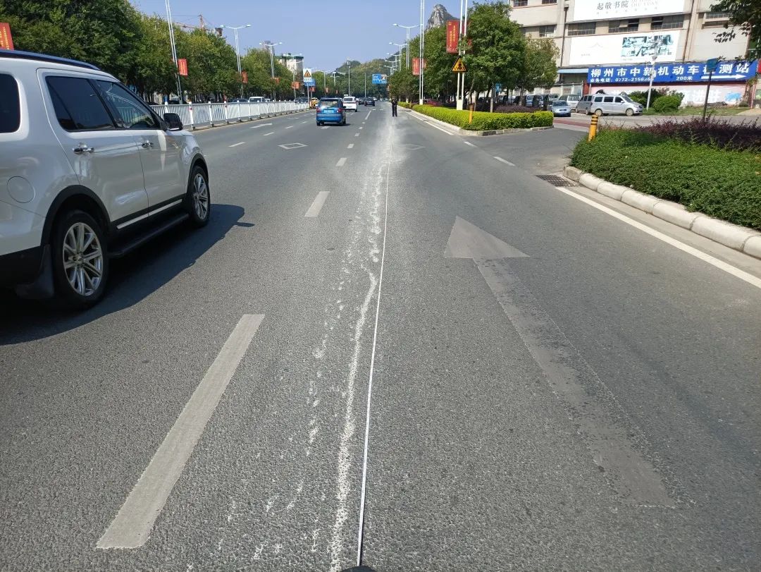正在附近执勤的城管队员立即赶到了现场,但此时投诉人所反映的路口已经没有混凝土的踪影,只在路面留下了一条几近干涸的泥浆带。执法人员顺着泥浆带的方向一路往东环大道方向追赶。在追赶到东环大道与河东路的交叉口时,终于发现了正在撒漏的混凝土搅拌车,立即上前将其拦停。