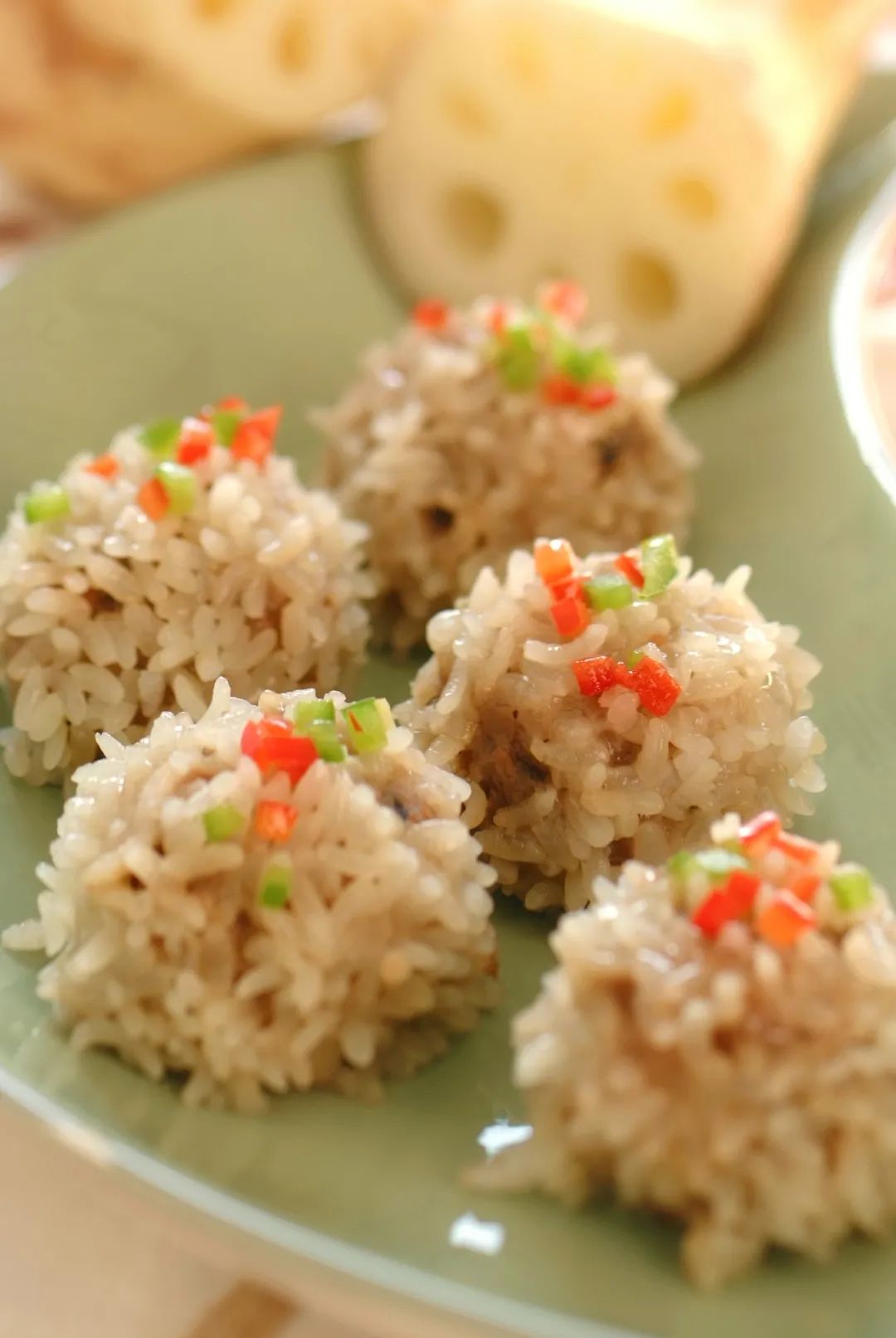 吃蒸出来的肉,还有更为精致的做法,猪肉、鱼肉、荸荠切碎做馅,揉成团子,在糯米中滚上一圈,蒸一笼“珍珠丸子”,格外清香诱人。