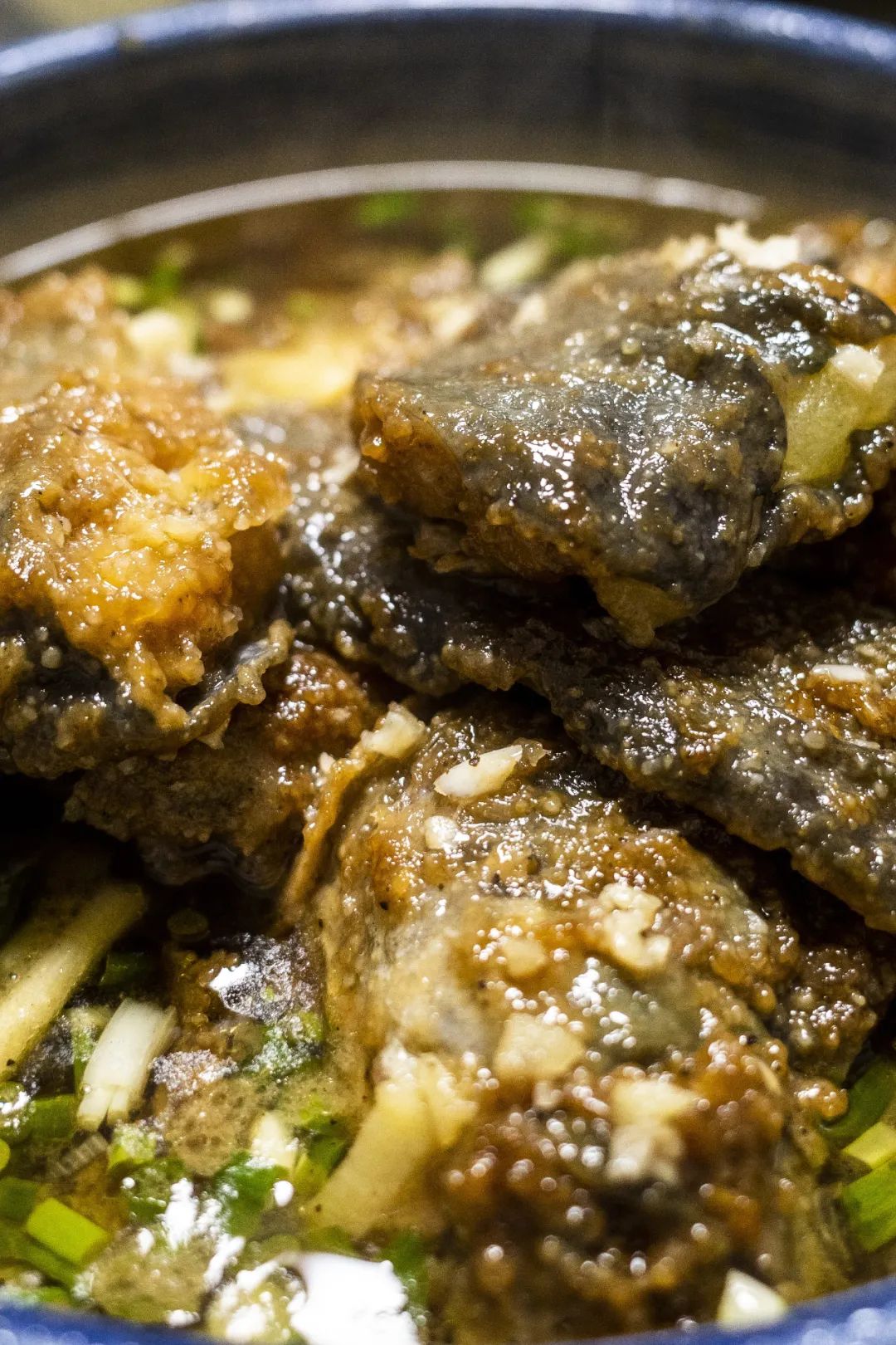蒸酥肉是宴席上的开门菜,酥肉炸透了,放上葱姜香料,蒸个数十分钟,味道格外浓郁。