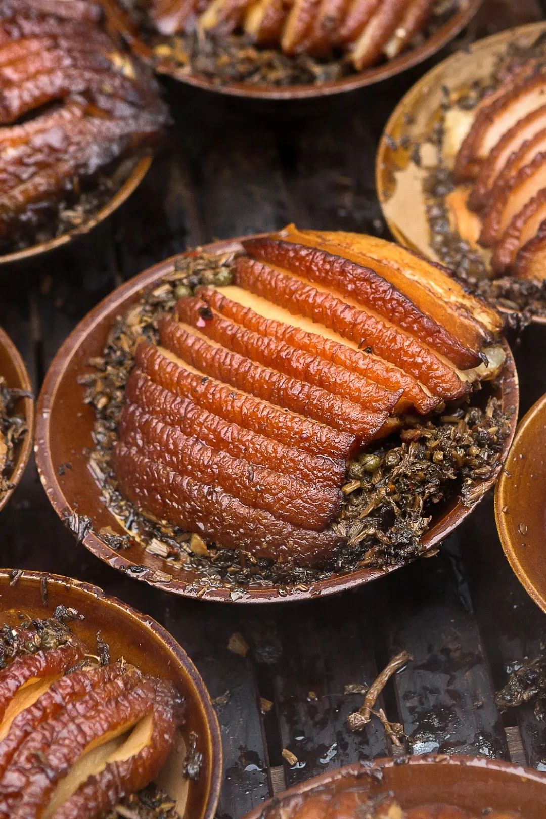 到了今天,在南昌松湖地区仍然保留着最古老的粉蒸肉做法。五花裹上米粉,以菜叶做垫,直蒸至肉与米粉半融半化,吃上一块,只觉得酥糯爽口、清香油润。