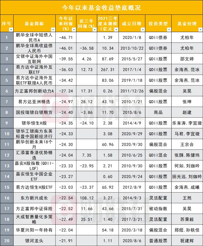 原标题:《2021年“垫底”基金故事:31只基金跌幅超20%,最猛暴跌近5成,部分明星基金经理颓势难改》