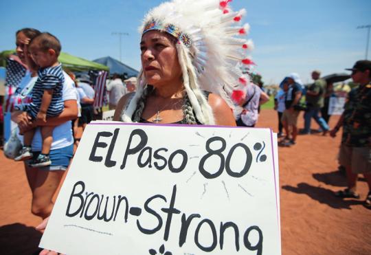 2019 年 8 月 7 日,美国得克萨斯州埃尔帕索市,印第安裔美国人参加反种族主义集会 王迎摄 / 本刊