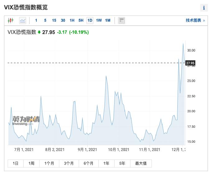 新变种病毒奥密克戎的疫情消息依旧困扰市场;但随着关于新毒株方面的最新研究公布越来越多,一定程度上缓解了市场的焦虑情绪,恐慌指数VIX回落。