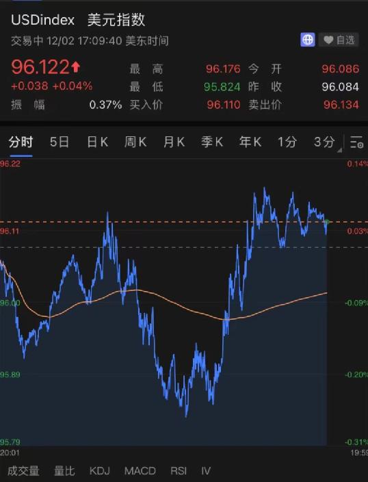 十年期美债收益率脱离逾两月低谷,涨0.96%;美元指数涨跌间波动,最终转涨重上96,涨0.04%。
