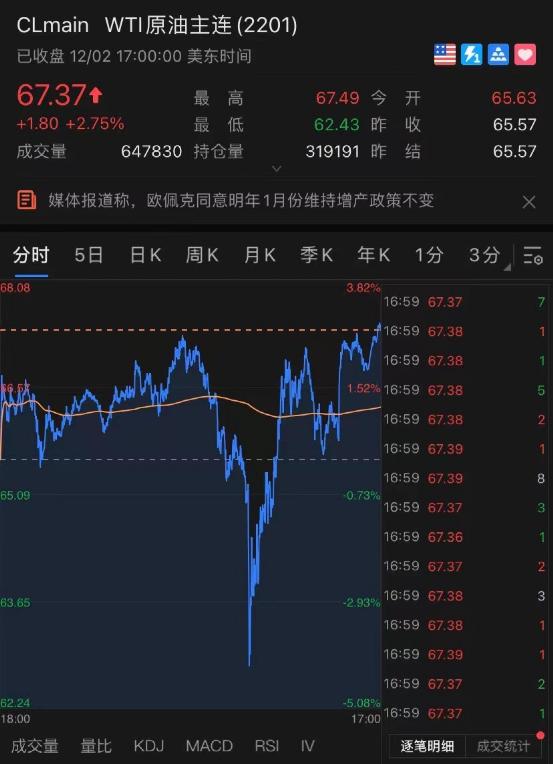 OPEC+同意继续推进1月增产计划,与之前预计因为奥密克戎带来的原油提炼技术熊市而造成的暂停增产不符合,原油价格一度跌掉5%。