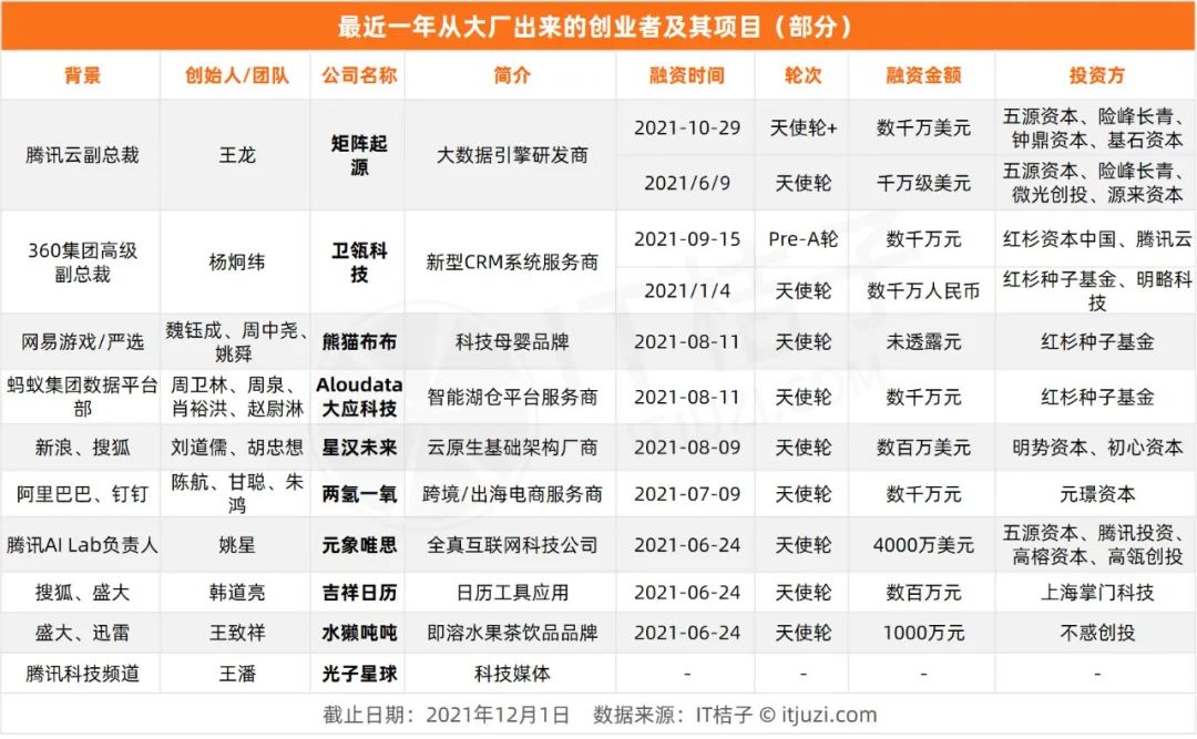 2021年,这些阿里、腾讯中高层离职创业,被资本追着投 原创 吴梅梅 IT桔子