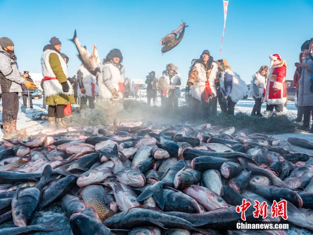 图为五大连池风景区冬捕矿泉鱼。五大连池风景区提供