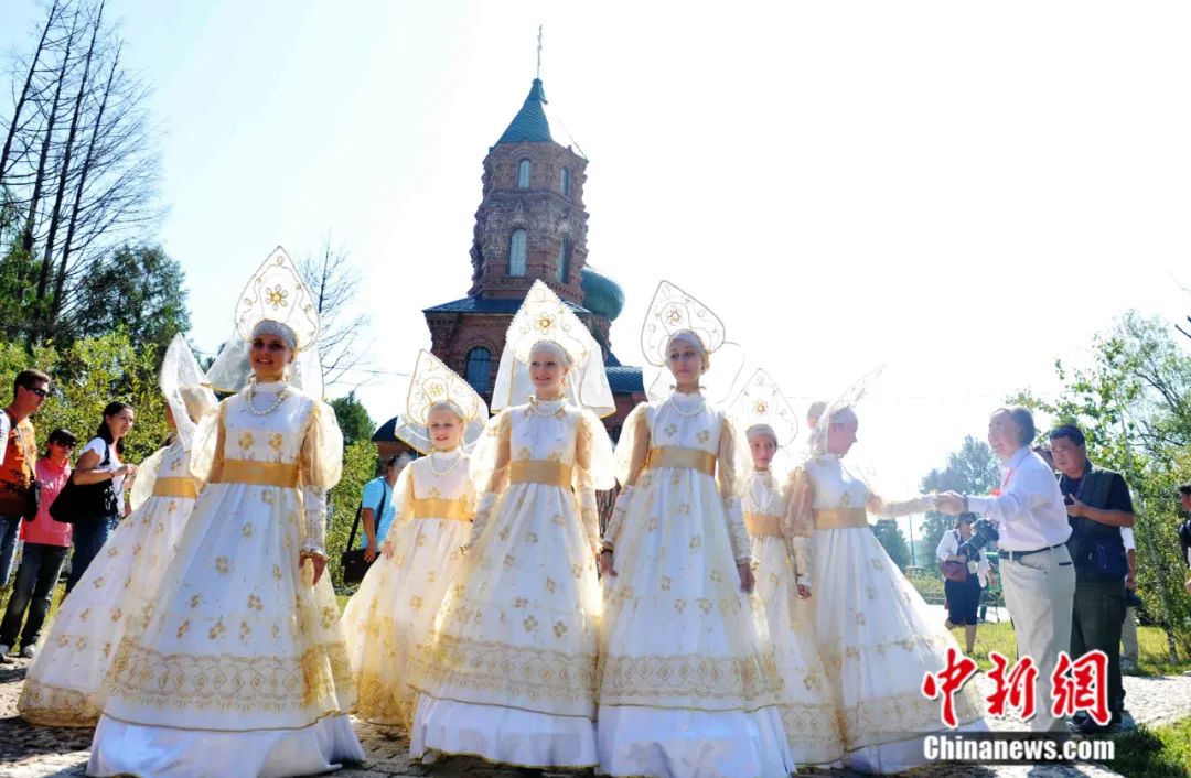 图为美丽的俄罗斯姑娘在黑河俄罗斯风情小镇。黑河市委宣传部提供
