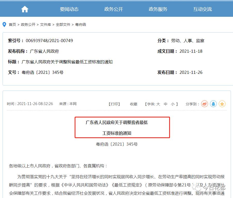 《广东省人民政府关于调整我省最低工资标准的通知》