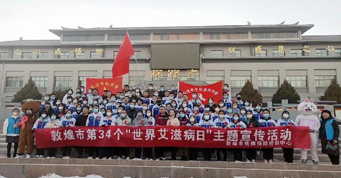 12月1日,敦煌市第34个世界艾滋病日暨性病防治主题宣传周活动在敦煌中学举行,活动通过宣读预防艾滋病倡议书、签字宣誓活动、佩戴红丝带、发放宣传资料和爱我抱抱趣味知识竞赛等形式,号召广大青年学子积极加入校园红丝带社团,以强烈的社会责任感,投身防疫抗艾活动,共同为构建和谐社会贡献青春力量。敦煌中学师生及红丝带志愿者共计4000余人参加了此次活动。