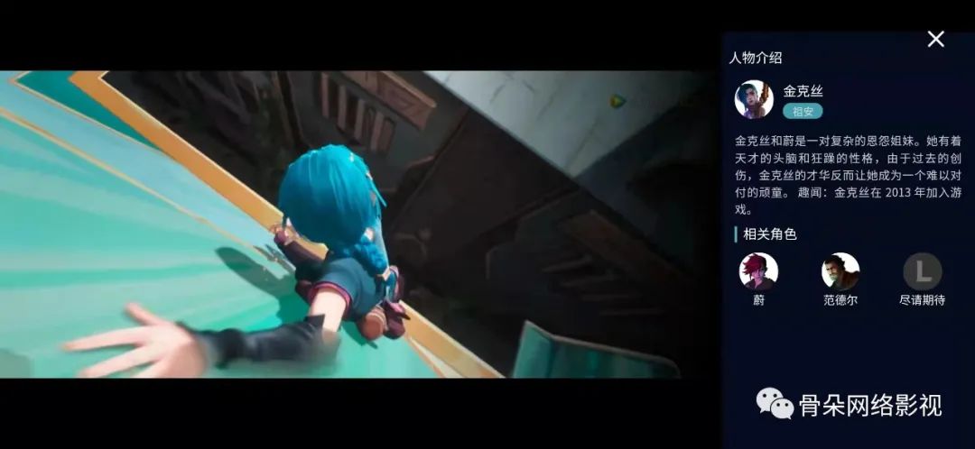 对于这类可能对游戏角色关系及大背景不大了解的群体,腾讯视频联动腾讯PCG的AI团队为《双城之战》开发了AI识别功能。在观看途中,观众如遇到想要了解的角色,只需点击屏幕旁的“海克斯放大镜”就可查看角色小传、人物关系谱帮助理解剧情;另外,为激发观众对游戏的兴趣,“海克斯放大镜”的信息中还包含角色在游戏里的定位、技能等主要介绍。