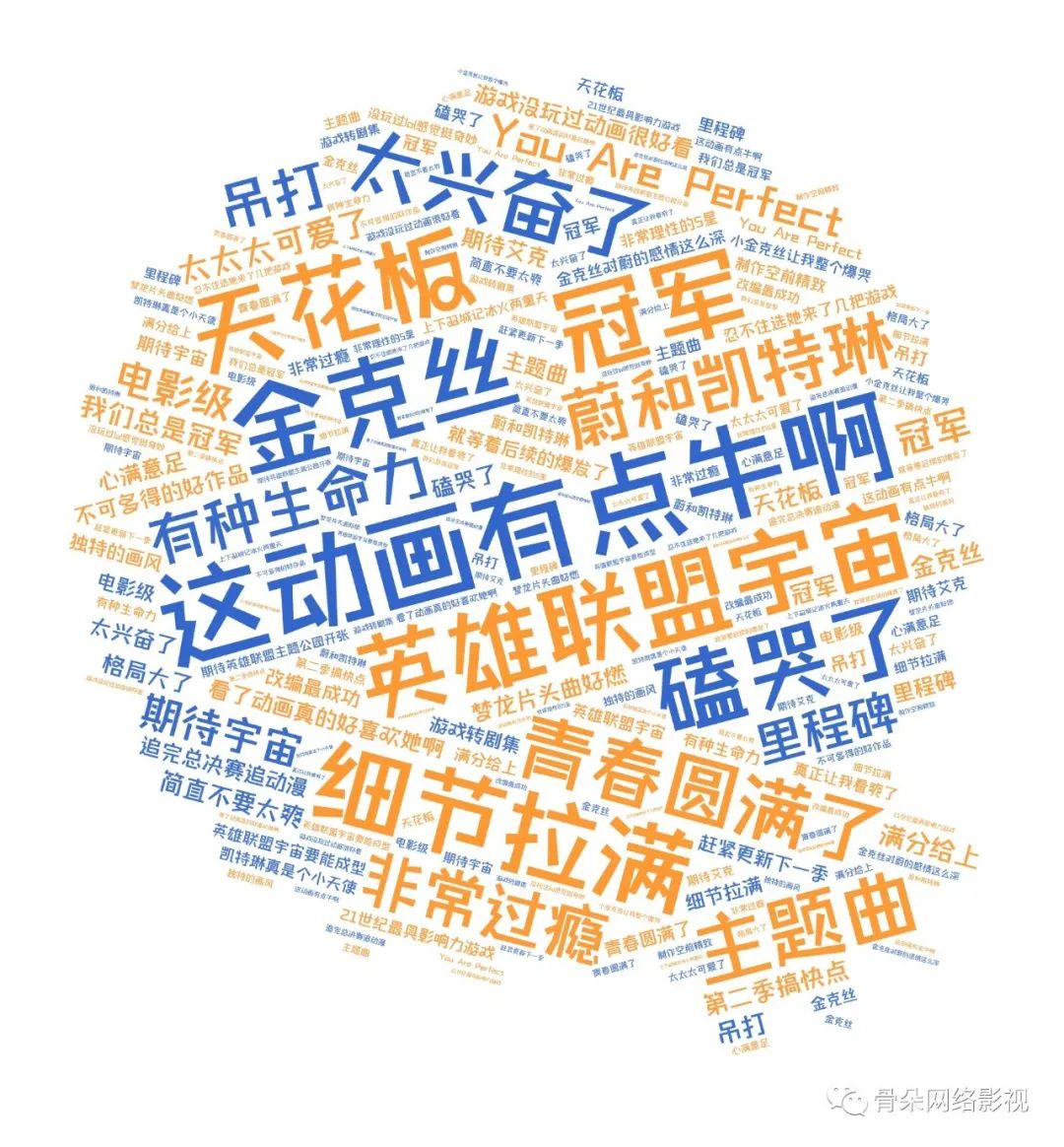 另外,骨朵统计了《双城之战》豆瓣词云,可以看到游戏相关的“我们是冠军”“青春圆满”等词汇出现频率很高,足以说明《双城之战》成功打动老玩家,并获得了极高评价。