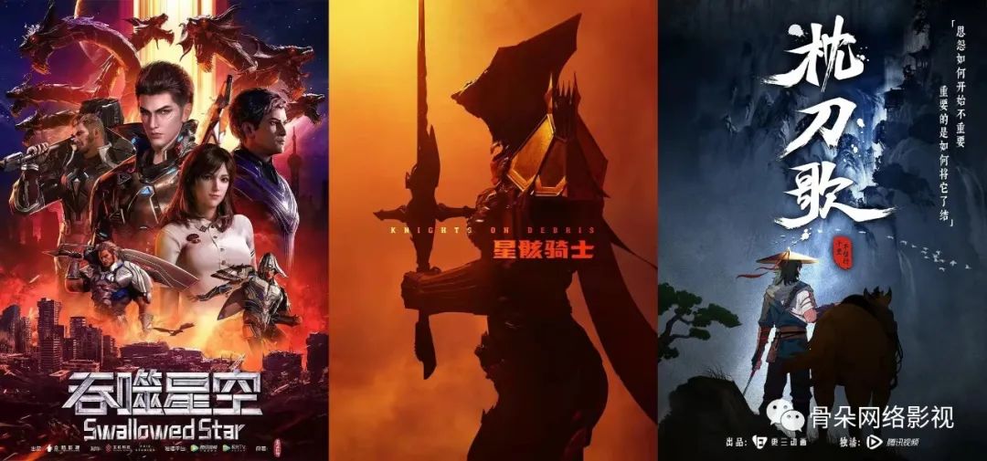 不仅联合海外顶尖工作室合作自制动画剧集《吞噬星空》,运用引擎实时渲染技术提高制作效率,满足高精度高细腻的画面品质需求;今年播出的《星骸骑士》则以“程序纹理”替代传统3D贴图流程,将制作效果及效率提高数倍,使国内动漫制作迈入新阶段;另外,《双城之战》中用到的三渲二技术,也出现在今年腾讯视频江湖题材动漫《枕刀歌》中,并取得了不错的市场反馈。