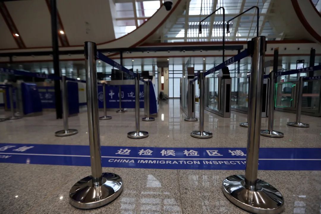 通过海关后来到边检窗口,国际旅客在这里办理入境手续。边检人员对护照进行查验,确保人证符合后即可入境。