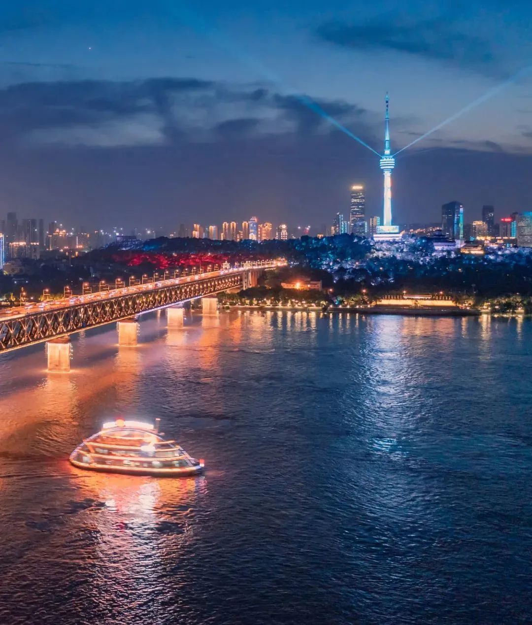 武汉长江大桥夜景(图片来源:视觉中国)