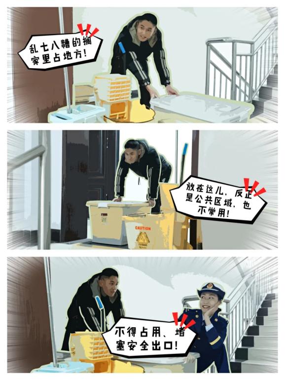 (三)占用、堵塞、封闭疏散通道、安全出口或者有其他妨碍安全疏散行为的;