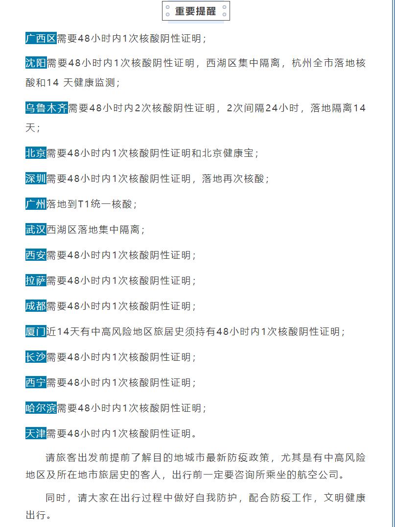 杭州机场最新提醒:近期前往这些地方须提供48h核酸证明