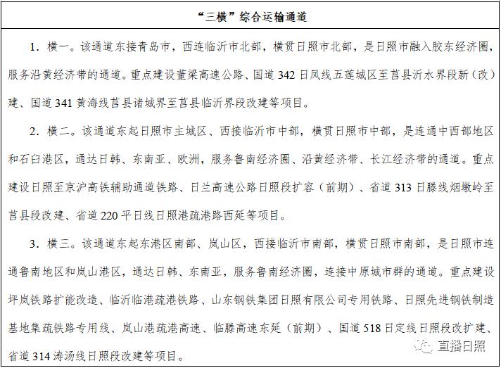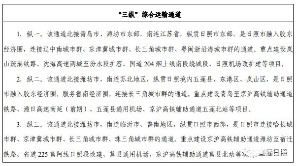 进一步完善高铁网络,高起点建设现代化高铁客运枢纽,努力实现县县通高铁;加快推进港口集疏运、重点企业铁路专用线建设,提升日照港货物集疏运能力,打通铁路运输“最后一公里”;积极推动以城市轨道交通为骨干的现代立体交通体系建设。