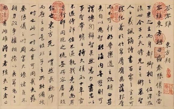 董其昌极为重视章法,认为:“古人论书,以章法为第一大事。”他在谋篇布局时紧紧围绕一个“淡”字来做文章,使得疏朗的章法和紧密的结字形成疏密对比,避免了因结字紧密而造成的局促小气,也使每个字能有足够的空间来展示字势和美感,使单字更加耐看。