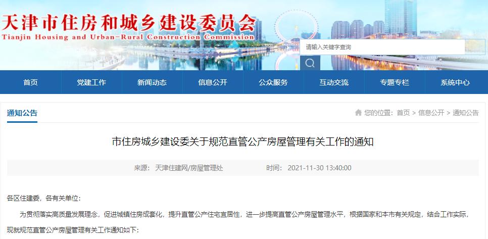 11月30日,天津市住房城乡建设委发布关于规范直管公产房屋管理有关工作的通知。通知明确:严格控制直管公产住宅分户;鼓励直管公产住宅进行并户。通知同时明确了直管公产房屋征收补偿的两种方式和几种具体情况,并明确:直管公产房屋征收补偿方式由房屋承租人选择。
