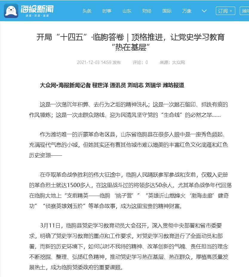 原标题:《开局“十四五”·临朐答卷|顶格推进,让党史学习教育“热在基层”》