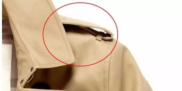 风衣肩前,有多出的一块布,叫做Gun flap(枪皮瓣)。这块布在以前战时主要是为了垫枪的,防止枪械的后坐力冲击。现在更多的是装饰作用。