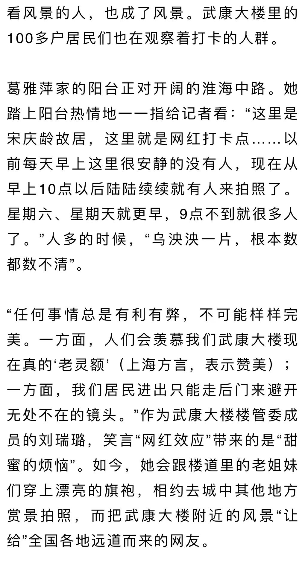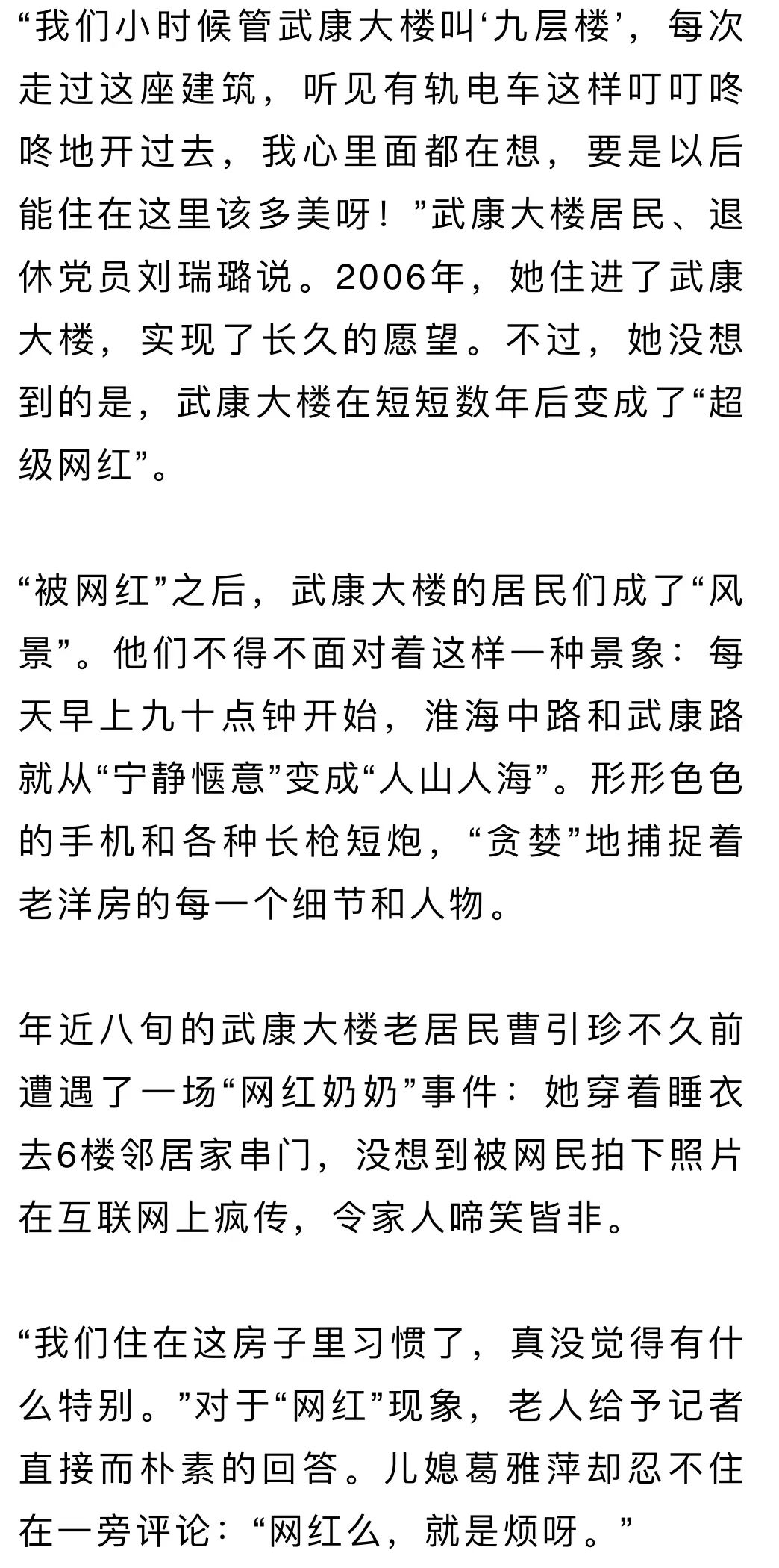 武康大楼的魅力持久而浓厚,它配得上这么多的关注。不过,在很长一段时间里,武康大楼曾经是安静的,而在成为“网红”之后,住在这里的100多户居民,他们的生活会受到干扰吗?他们的心理感受是怎样的?这栋经历百年风雨的老建筑,它的“硬件”和“软件”,能跟得上居民对美好生活的向往吗?