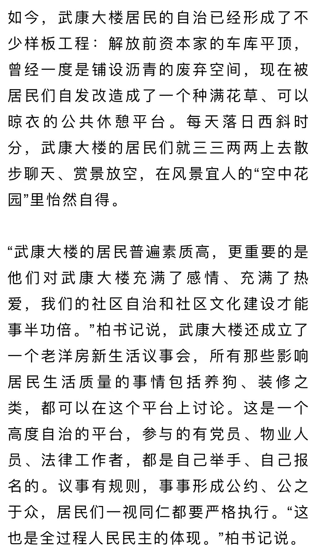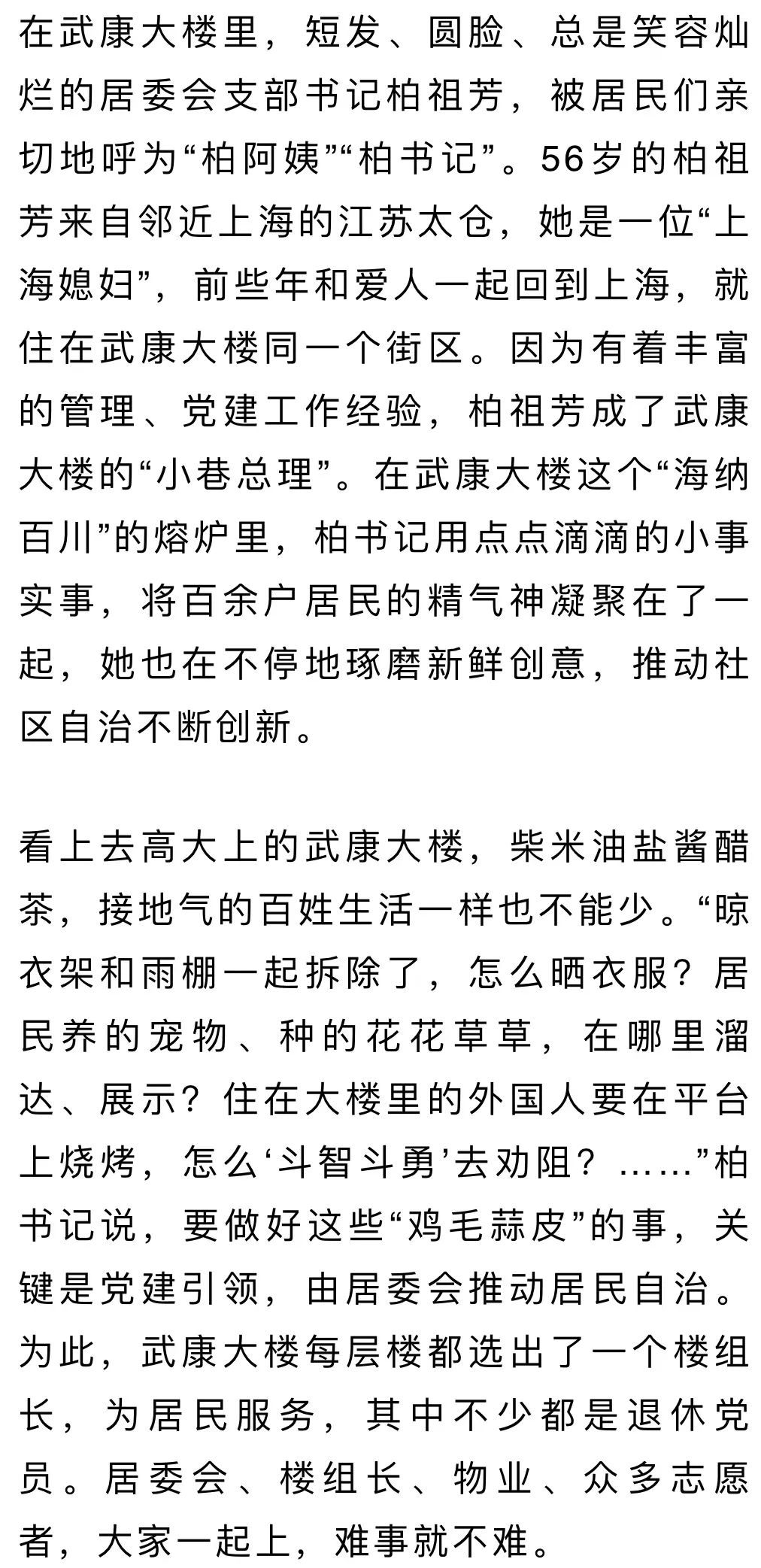 让我们再一次凝视武康大楼,这座可阅读的历史建筑,这座迷人的“超级网红”。它,兼容城市景观、人文底蕴、社会发展、城市治理等诸多话题于一身,早已超越了单纯的“网红”现象。上海,正在建设社会主义国际文化大都市。沐浴百年风雨,武康大楼里的人间烟火,武康大楼内外的“治理故事”,为这座城市的软实力提升贡献着自己的独特力量。