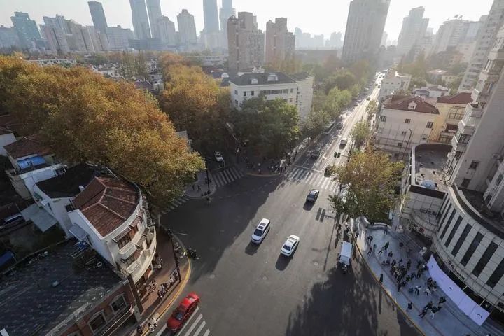 11月3日,人们在上海武康大楼前拍照。新华社记者张豪夫摄