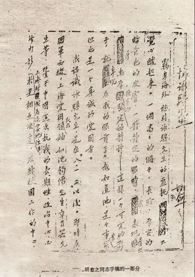 《忆詠骐先生》手稿中提到,“至今抗战三年有余,国内青年之参加革命而受《西行漫记》的鼓励者不知凡几……而詠骐先生也始终为它的赞助者之一。”