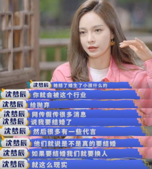 在节目中,当谈到女性的职业规划时,沈梦辰直言:“说实话,我不敢结婚。”