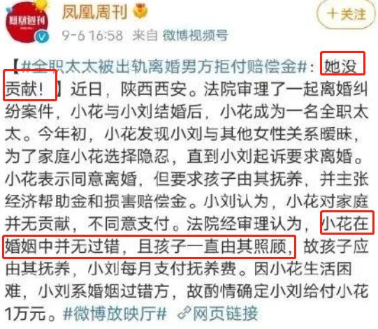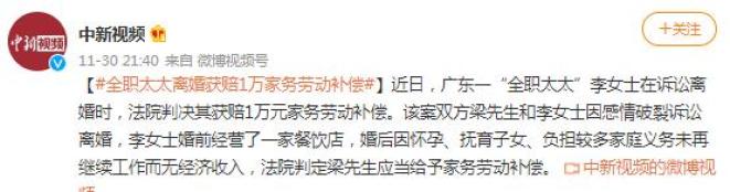 她是一名全职太太,离婚时成功拿到离婚补偿。
