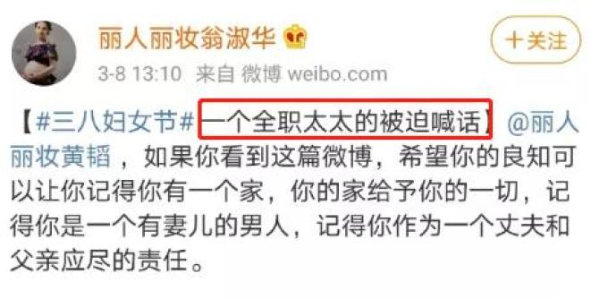 丽人丽妆的创始人翁淑华,在微博喊老公回家。