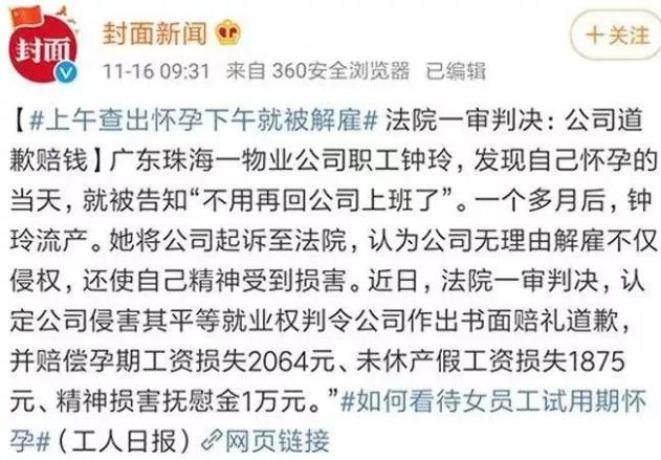 上午刚查出怀孕,下午就被解雇。