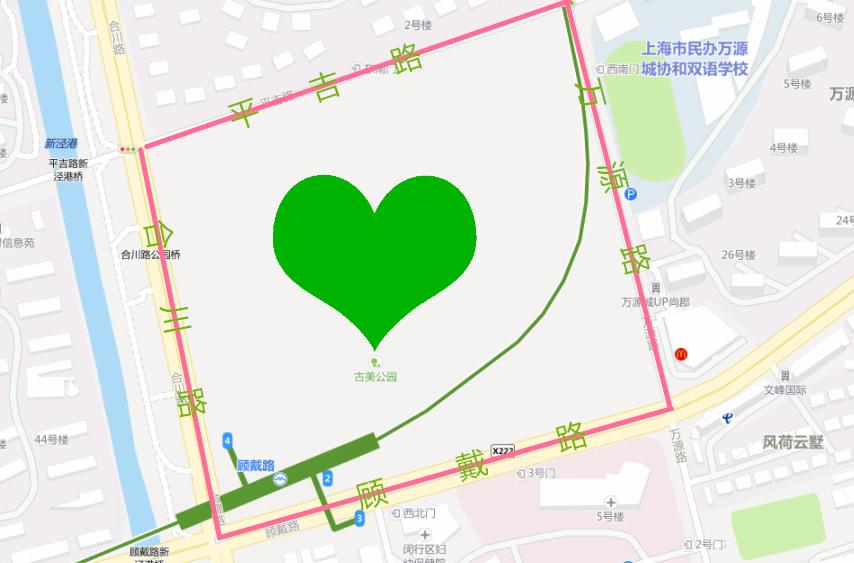 古美公园位于闵行区万源A街区,南邻顾戴路,北至平吉路,西至合川路,东至万源路,公园建设用地面积近10万平方米,其中绿地面积51749平方米,水体面积30844平方米。公园2019年3月动工,目前已完工并对外开放。