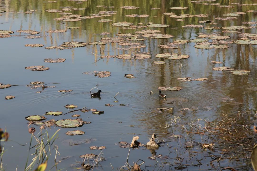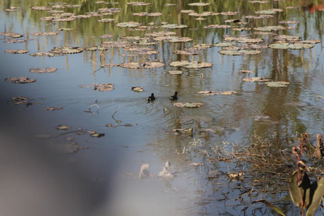 公园中心巨大的水域,引来了白鹭、鸳鸯、野鸭等各种叫不出名字的小家伙。其中一对小鸳鸯挺有意思——