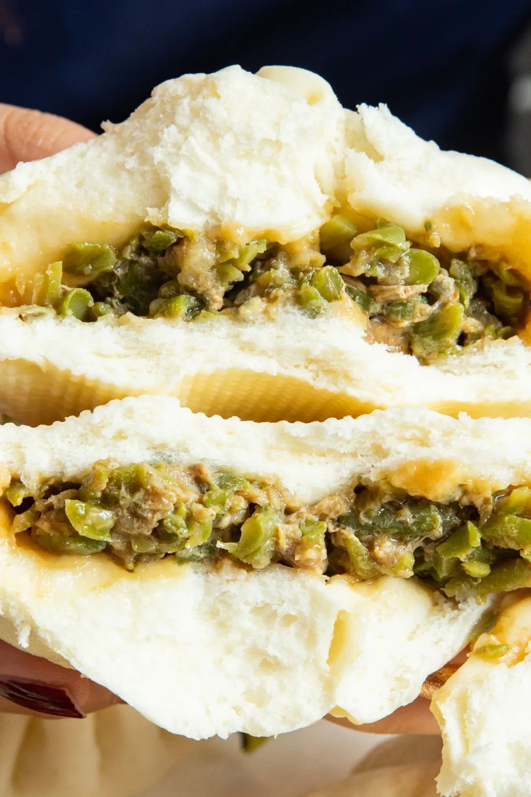 东北的豆角猪肉包,做起来有个关键要素,豆角要用热水焯成半熟,能很好的祛除豆腥味,也更容易蒸熟。豆角包在面皮里,不仅有一股豆香气,也让包子的口感更加丰富。