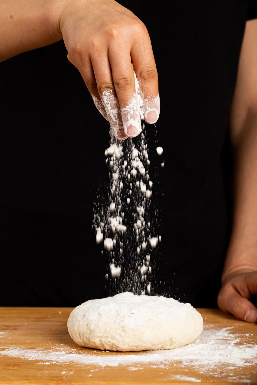 南方包子多用死面,包子皮口感偏硬,东北人更喜欢玩发面,面发得好,包子才蓬松柔软。和面时加酵母粉,搅成絮状,揉成光滑的面团。发好的面全是大蜂窝,再揉面排气,面团已是光滑无比。