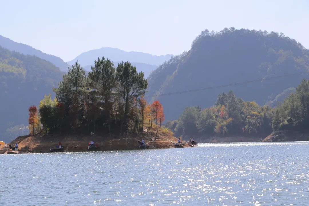 连绵的山峦迂回婉转,在多姿多彩的植被中,虫鸟齐鸣。秋冬时节菊黄鱼肥,正是垂钓的好季节,更是钓鱼人收获的季节。
