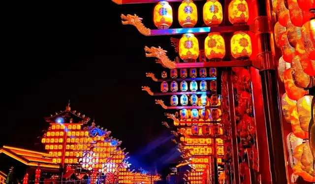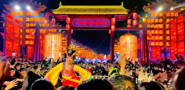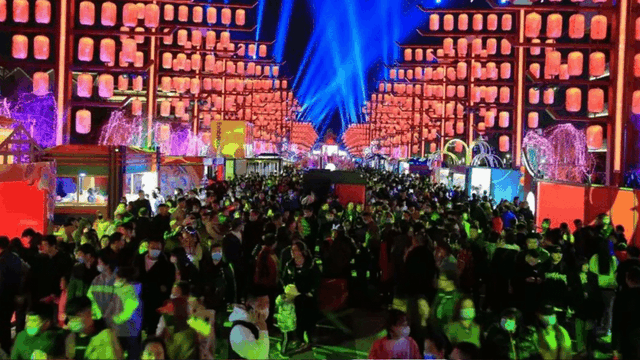入夜,81座牌楼灯塔、400处氛围灯墙、3000盏光束激光灯、2万余个国风灯笼......让你梦回唐朝!