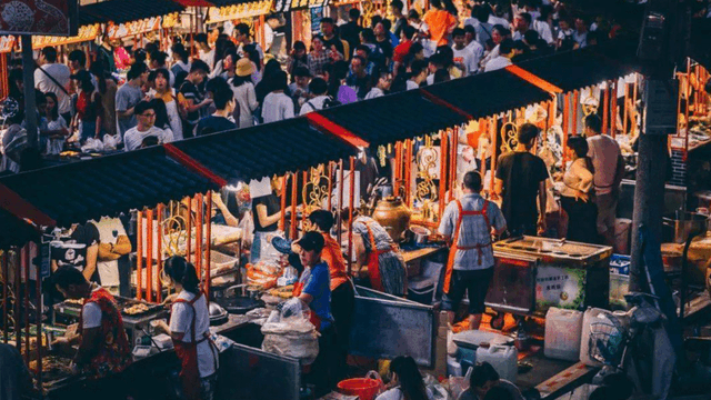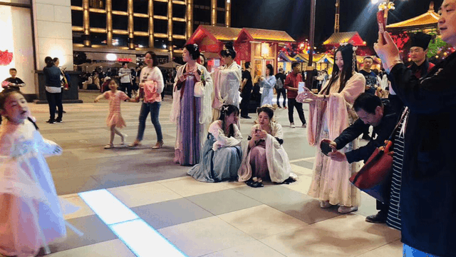 这里还有不倒翁小哥哥、小姐姐与你穿越千年的对视。仙袂飘飘,犹如霓虹羽衣。月色灯光、满地倾泻,你能想象到的街头表演、美食小吃,这里通通都有。