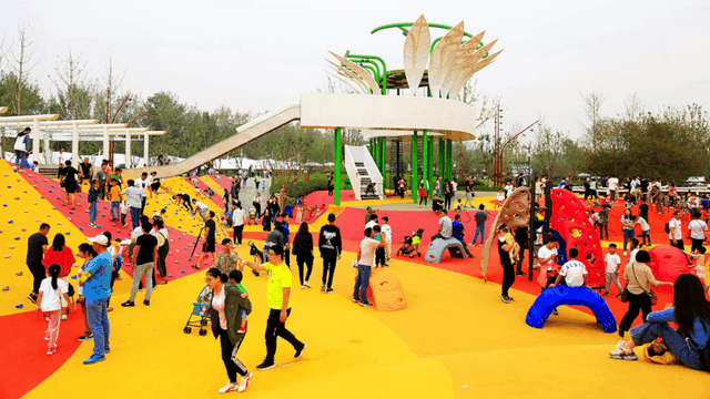 在亲子娱乐区不仅有勇者之坡、龙之森林、皮影飞龙、亲子CS、萌宠乐园、亲子绘本馆等20余个萌感十足、趣味互动的儿童网红游乐打卡点,还有120 余项儿童游乐设施。