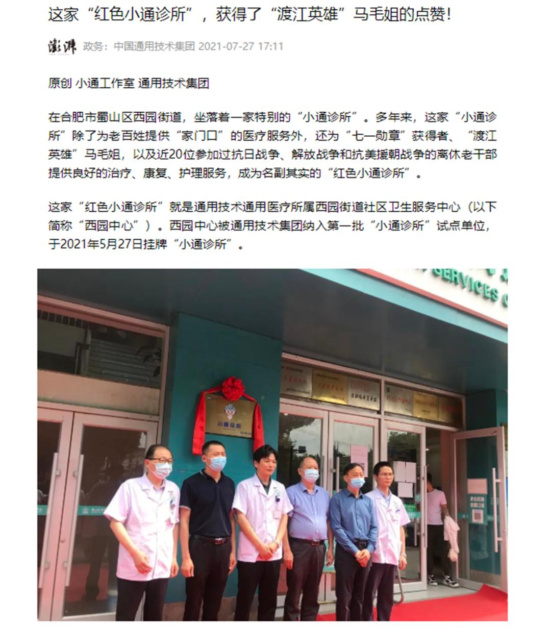 △澎湃网报道集团“红色小通诊所”长期照护“渡江英雄”马毛姐事迹