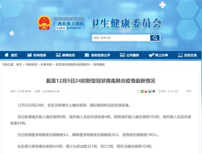 12月5日0至24时,全区无新增本土确诊病例、疑似病例和无症状感染者。