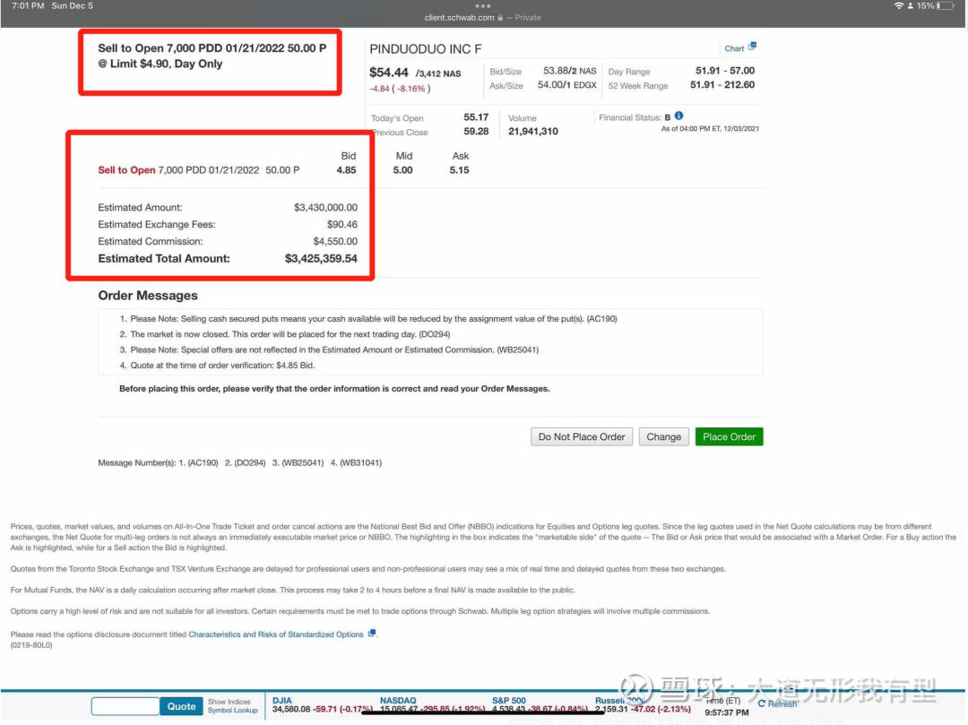 3.另外可能段永平想买拼多多,但现在54美元,他还不想买,就想50美元以下买,这就用了一个更保险的方式去买到这个股票。