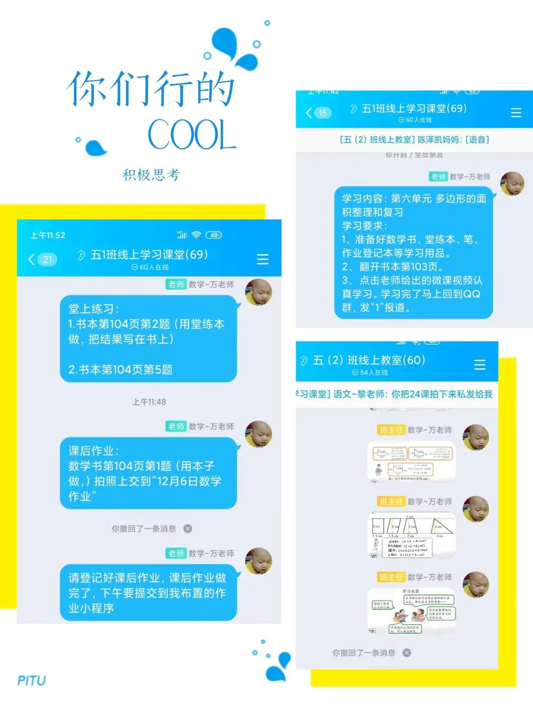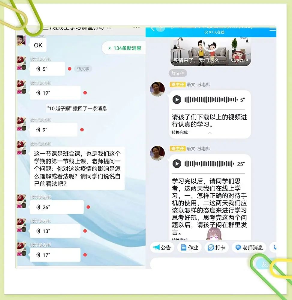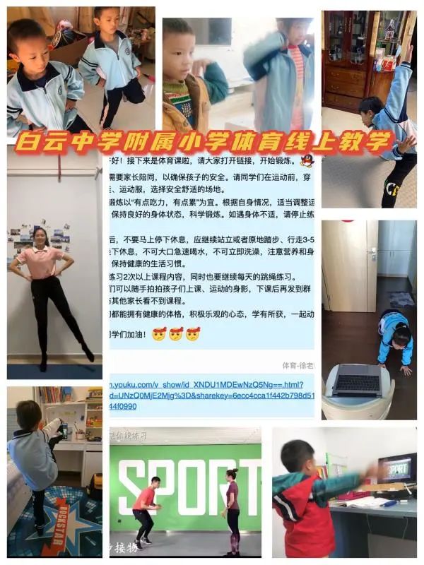 ➤ 此外,各学科老师课堂注意“五育”融合,不加重学生的课业负担,并有针对性进行集体辅导和个别指导,同时做好居家锻炼,保障学生身心健康,真正做到“隔而不离”。