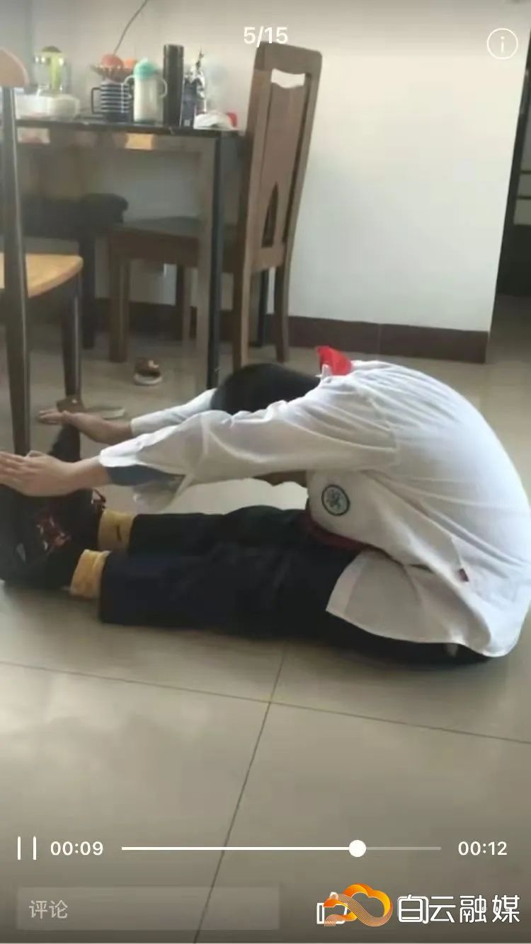 除了线上升旗仪式和文化课教学外,棠涌小学还组织学生在家里练习坐位体前屈、跳绳,希望通过开展体育运动,锻炼同学们的体魄。