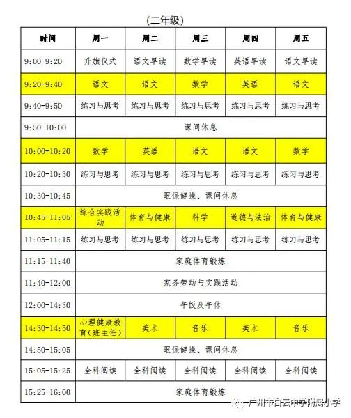 为了做好线上教学,白云中学附属小学根据低年级学生注意力时间短、不宜长时间使用电子产品等特点,在安排常规的语文、数学、英语等学科教学的同时,还安排了课间运动、眼保健操、“对抗疫情,你我同心”心理健康主题活动、音乐课、美术课等课程,并特意将线上课程游戏化、活动化。
