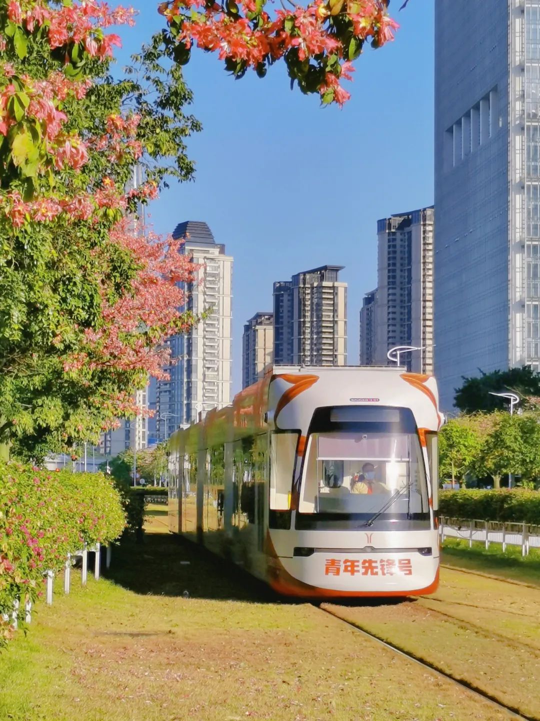 有轨列车“叮叮叮”地开过,